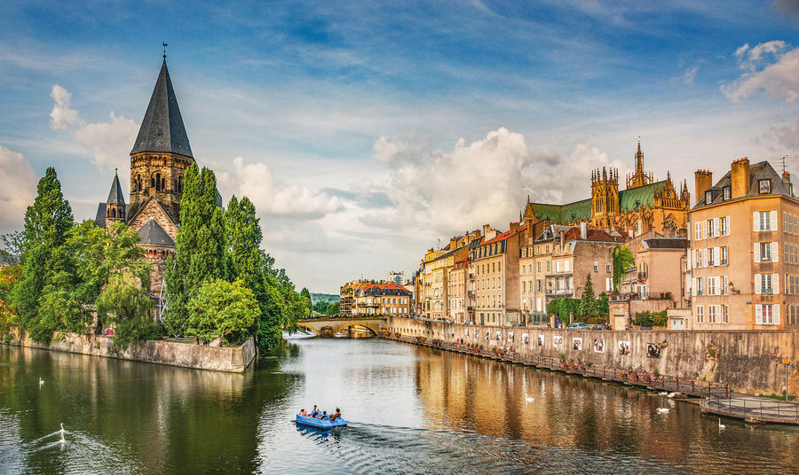 Unser Wochenendausflug führt uns nach Nancy und Metz im idyllischen Lothringen. Unterwegs Möglichkeit für einen Besuch des Schiffhebewerks von Saint-Louis Arzviller, ein wahrhaftiger Aufzug für Schiffe, der eine Reihe von 17 Schleusen ersetzt. In Nancy angekommen entdecken wir den Charme der Stadt. Als ehemalige Hauptstadt der Herzöge von Lothringen wurde Nancy in Laufe seiner drei goldenen Zeitalter immer schöner. Der Herzogspalast und die Patrizierhäuser der Altstadt zeugen noch heute vom Glanz und der Macht des herzoglichen Hofes der Renaissance. Hier erwartet uns auch der wohl „schönste Platz der Welt“: Die Place Stanislas mit seinen schmiedeeisernen und vergoldeten Gittern ist das Juwel eines bemerkenswerten architektonischen Komplexes, der seit 1983 zum Weltkulturerbe der UNESCO zählt. Wussten Sie das es in Nancy über 20 süße Spezialitäten gibt? Da wir jetzt schon hier sind, müssen wir unbedingt die bunten Makronen, die leckeren Bergamotte-Bonbons und die süßen Marquises bei einem Besuch einer Confiserie probieren. Abends speisen wir in einer lokalen Brasserie. Zu späteren Stunde werden im Sommer (Juni bis September) die Fassanden des Place Stanislas zu einer eindrucksvollen Leinwandkulisse. Entsprechend sollten wir die ca. 20-minütige Ton- und Lichtershow nicht verpassen.