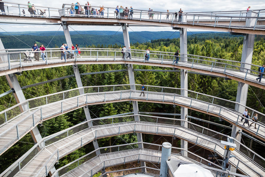 Heute geht es in den Schwarzwald, nach Bad Wildbad. Auffahrt mit der Bergbahn auf den Sommerberg. Nach einem kurzen Spaziergang erreichen wir auch schon den Baumwipfelpfad. Gemütlich laufen wir, 20 Meter über dem Waldboden, durch Tannen und Fichten. Dabei erfahren wir, bei den zahlreichen Lern- und Erlebnisstationen, viel über den Wald und seine Bewohner. Am Ende des Pfades „besteigen“ (gemächlich ansteigender Rundweg über eine Rampe) wir den 40 Meter hohen Aussichtssturm. Oben angekommen erwartet uns ein beeindruckender 360 Grad Rundumblick über die Wipfel des Schwarzwaldes. Wer den Rückweg nicht über die Rampe machen möchte, schnappt sich einen Teppich und rutsch, in der geschlossenen Rutsche (Aufpreis), wieder nach unten. Im Anschluss kehren wir in einem der Restaurants auf dem Berg oder in der Stadt zum Mittagessen ein. Am Nachmittag setzen wird die Fahrt fort und fahren nach Pforzheim. Hier besuchen wir den Gasometer und erleben auf einer 360°Grad Leinwand faszinierende Einblicke, wie z.B. in die Unterwasserwelt des Great Barrier Reef. (Wechselndes Programm). Am Spätnachmittag Beginn der Heimreise.